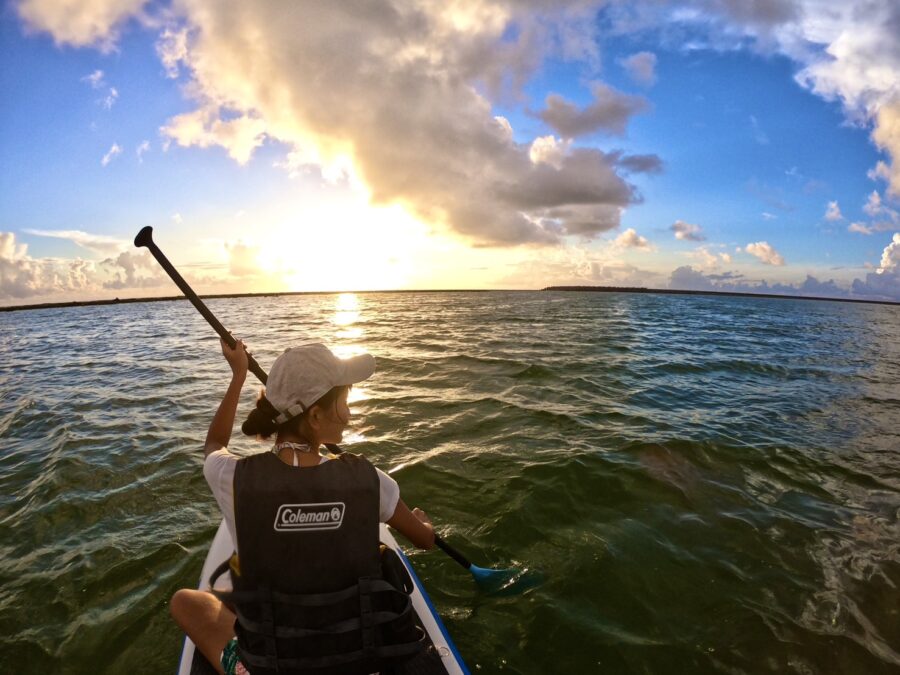 夕暮れから夜にかけて、ボードの上から水平線に日が沈む瞬間は絶景そのものです。美しい夕日や月を見ながら、SUPならではのゆったりした素敵な時間を楽しみましょう。